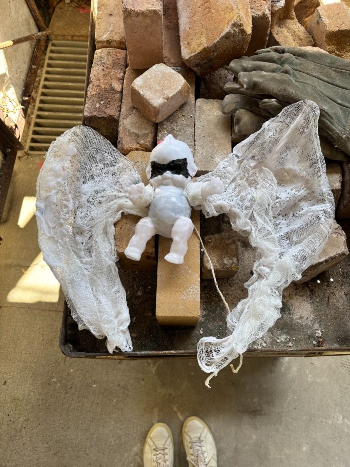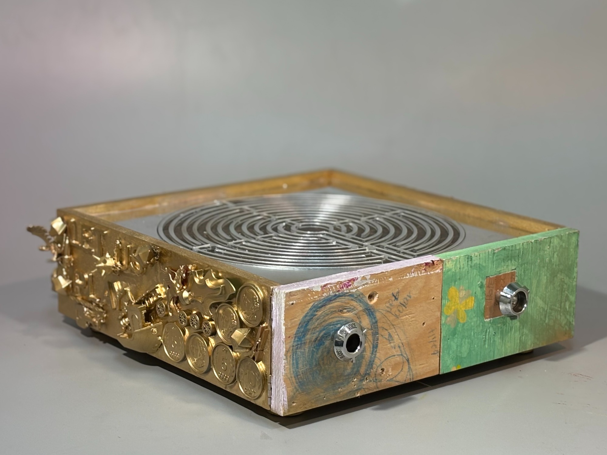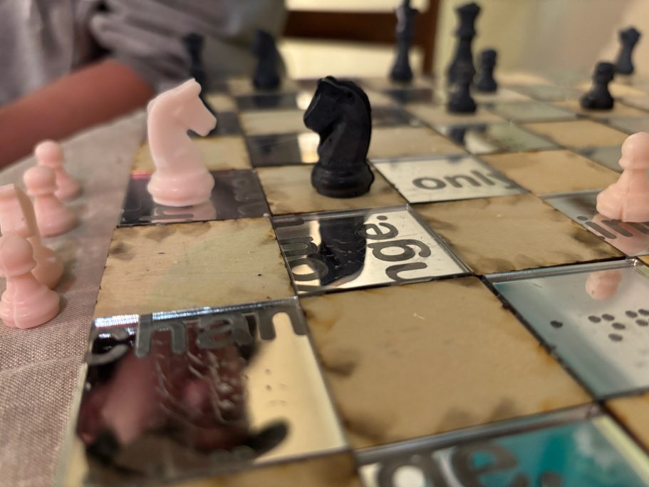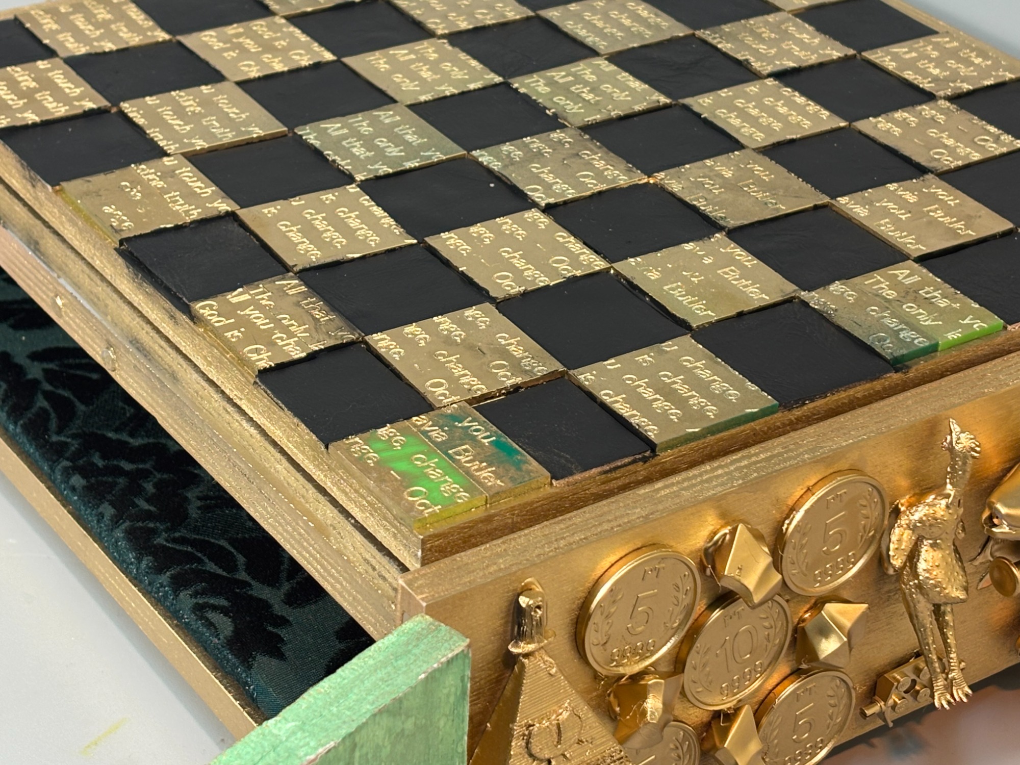Wood from a repurposed rocking chair, laser etched
